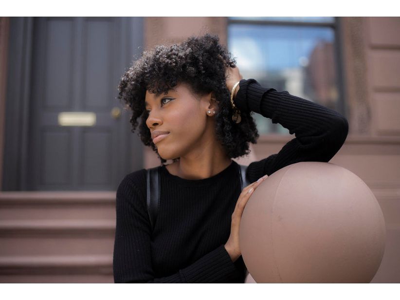 Black cotton womens top, with long sleeves, no collar and a thick hem.